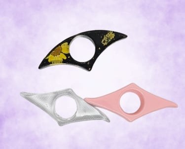 These are useful little items that allow you to hold your book open one-handed. Just place your thumb through the center, and put the holder in the center of the book, and there you go!