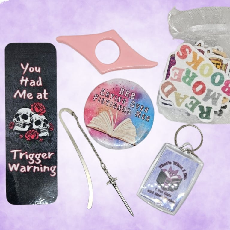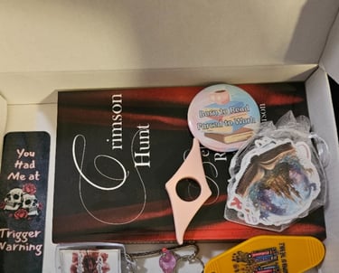 Check out below for a list of all the items included in every book box. You will get at least one of each item, maybe more! There are lots of options and you can tailor it in some ways to your desire on the order form. When you buy a book box, you're supporting a small-time author and getting some awesome swag that you'll never find anywhere else! Most items are handmade!
